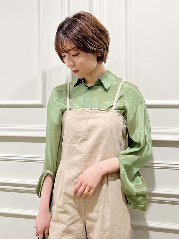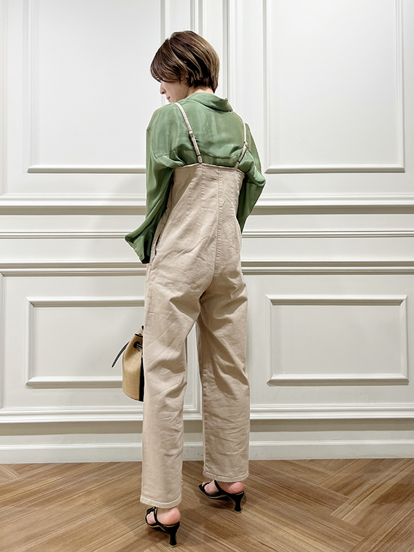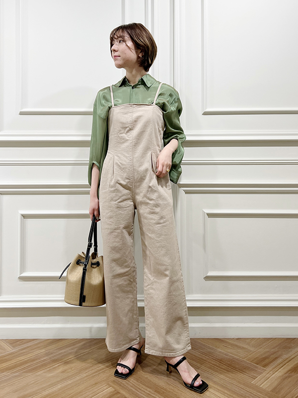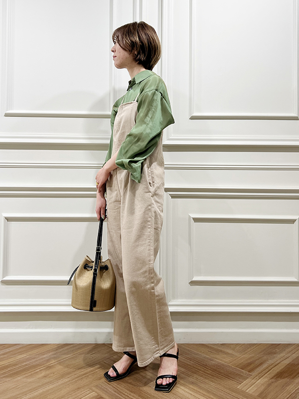 今回はCLANE(クラネ)の光沢感が印象的なシャツと合わせて、スタイリッシュなデニムサロペットコーデにしてみました♪