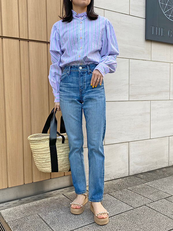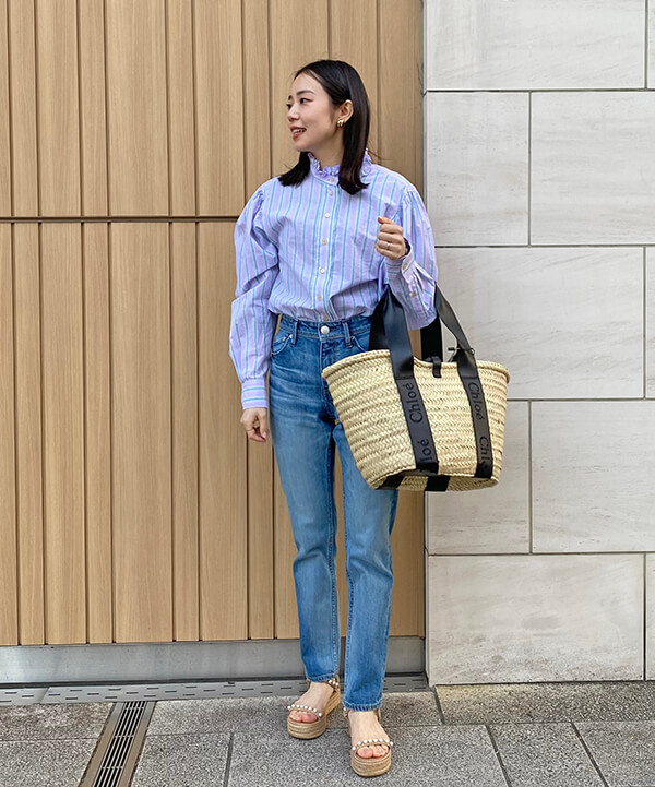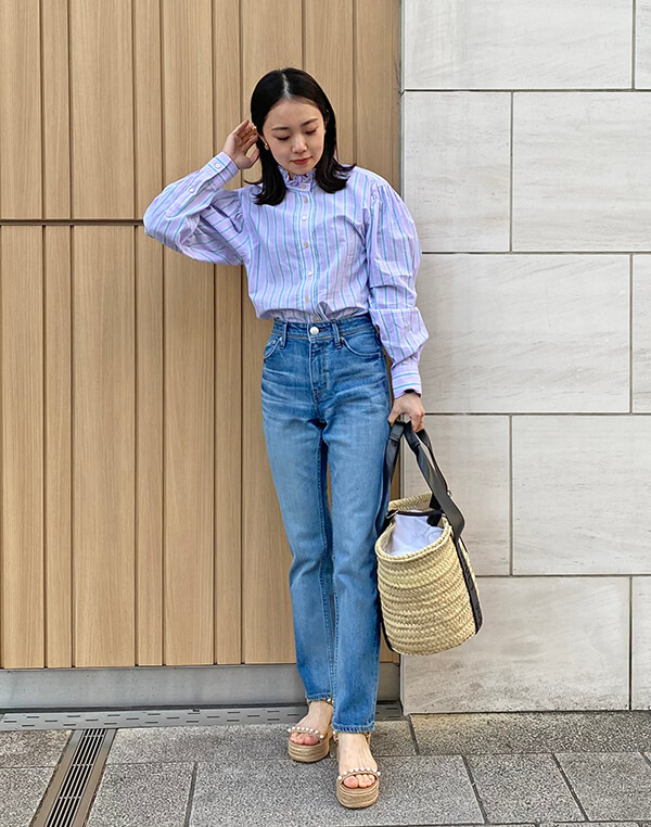 私の中では春夏定番のデニムとブラウスのコーディネートです!