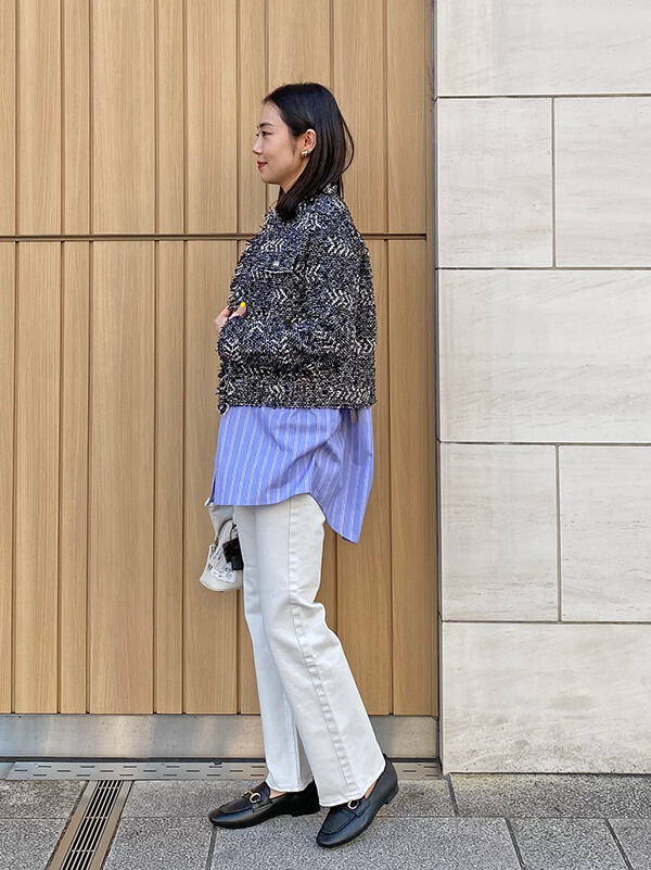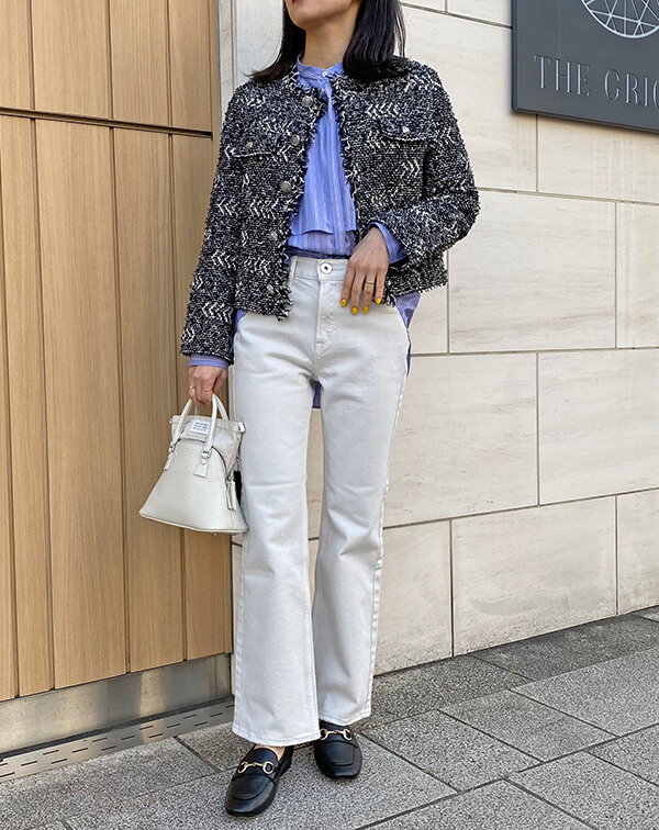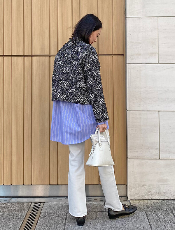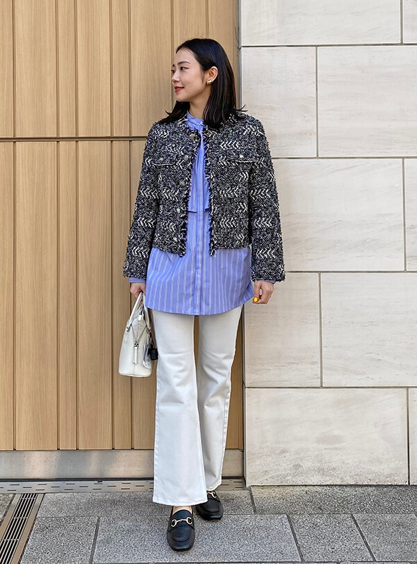 ツィードのジャケットにこの春トレンドのシャツをレイヤード♪