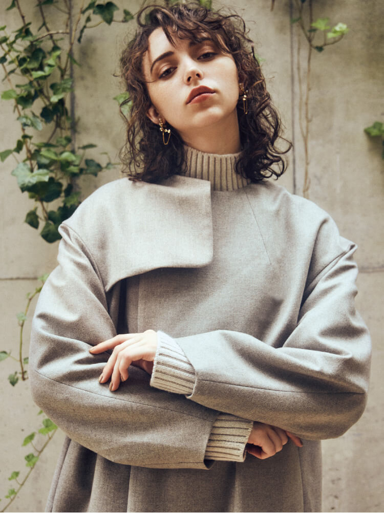 肌触りが良くしなやかな素材に、全面芯を施し張りのあるシルエットに仕上げています。