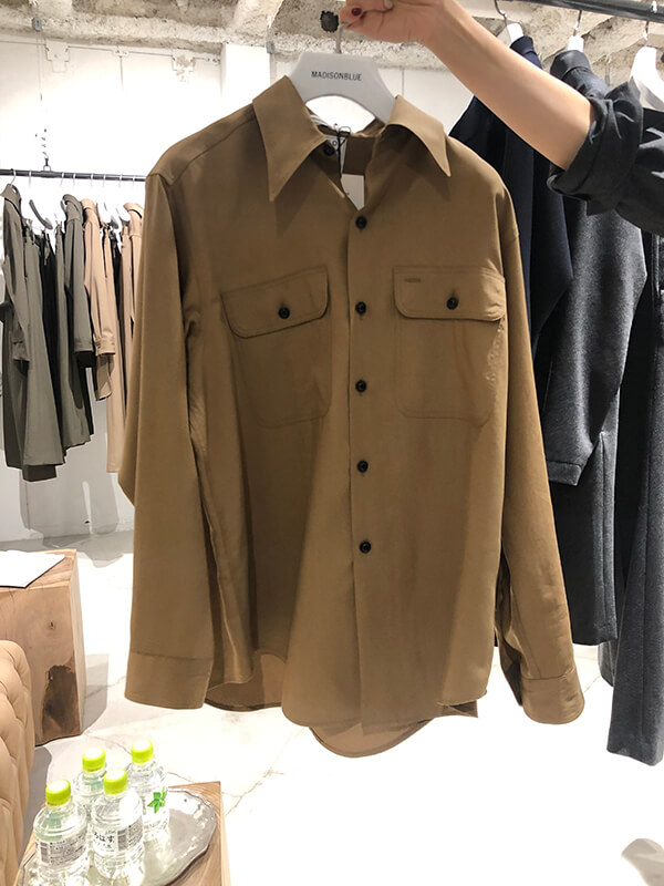 身体に吸い付くようなしっとりとした落ち感のシャツは一度着るとやみつきになります。