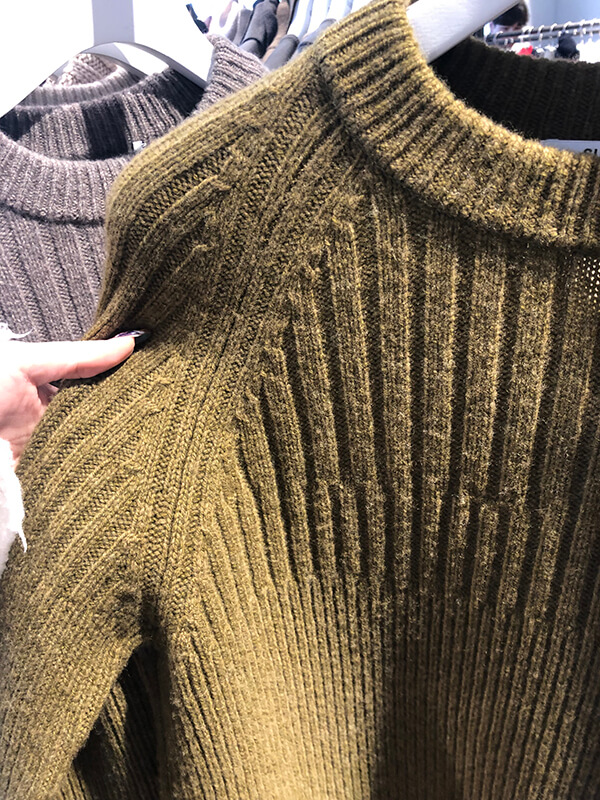 3ゲージで編み立てたローゲージのタートルネックニット。