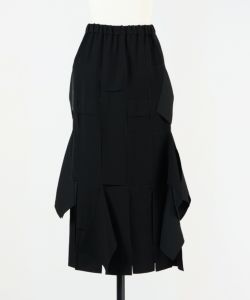ウエストにデザインがあるので、低身長の方でもバランスを崩さず、ボリュームのあるスカートと合わせてもバランスよく決まります。