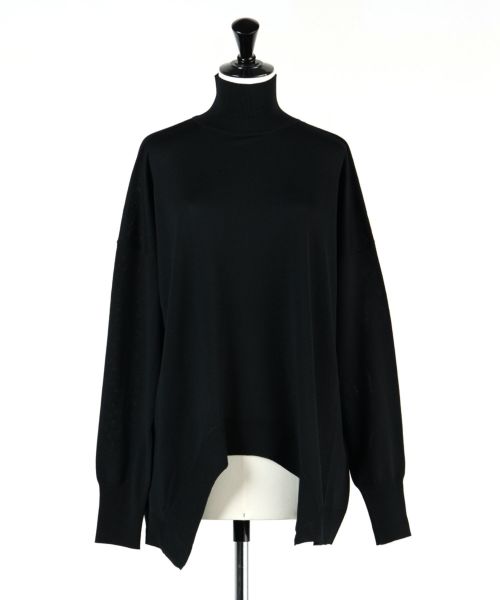裾のカーブの位置がアシンメトリーになったデザインニット。