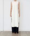 クリーンなEZUMIのロング丈トップスに、08サーカスの墨流し染めのワイドパンツ。
