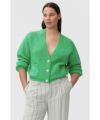 お花のビジューボタンがキュートなコンパクトカーディガン。