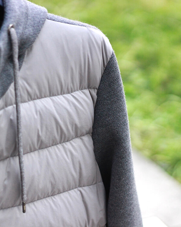 ミラノリブと軽量ナイロンを使用したハイブリットパーカーで、カジュアルなデザインながらも品のあるミラノリブニットを使用することで、上品な印象に。軽やかな着心地とデザイン性に優れたモデルです。