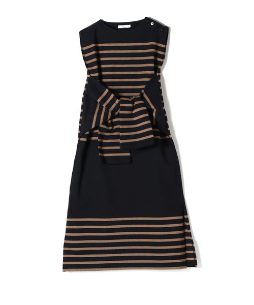 SS26コレクションで存在感を放った程よい厚みのあるバスク素材を使用したドレス。ウエストから両サイドに袖のようなデザインがあしらわれ、結ぶことでウエストマークとしての機能を果たします。