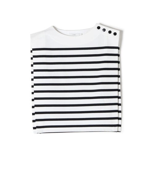 程よい厚みのあるバスク素材を使用したノースリーブカットソー。SS26コレクションでも存在感を放った一着で、左肩にあしらわれたボタンディテールがアクセントとなっています。