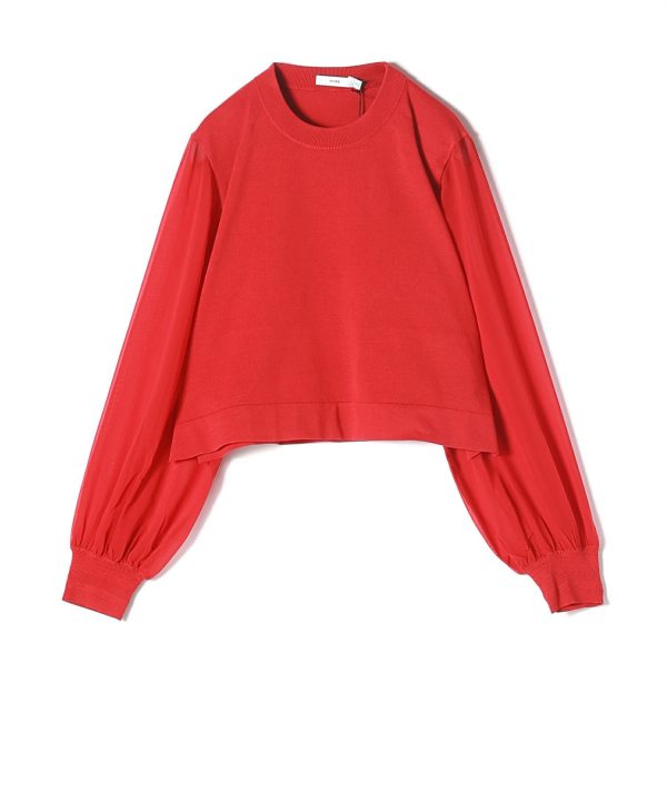 SHEER SLEEVE CREW NECK CROPPED KNIT