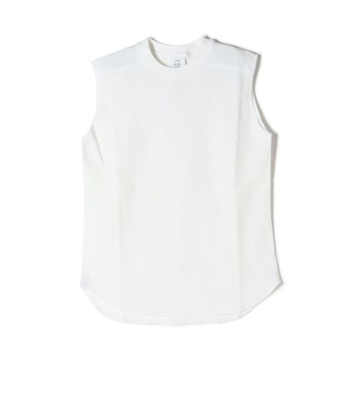 HYKE(ハイク)のカットソー。SWEDISH ARMYの60?80年代アンダーシャツをデザインソースにした、ノースリーブタイプです。肩まわりはすっきりと仕上げつつ、程よくゆとりのあるレギュラーシルエットで、一枚でもインナーとしても使いやすいバランス。ジャケットやシャツの下に合わせてももたつかず、幅広いスタイリングをお楽しみいただけます。