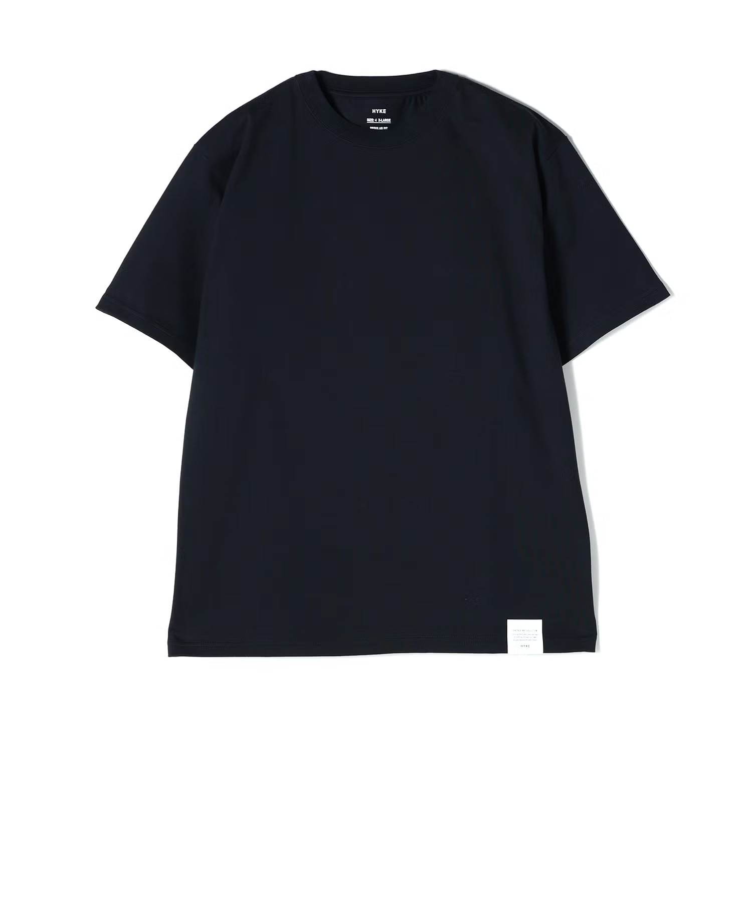 HYKE(ハイク)のカットソー。ベーシックを極めたシンプルな佇まいで、シルエットは程よくゆとりのあるバランス。身体のラインを拾いすぎず、一枚ではもちろん、ジャケットやシャツのインナーとしても使いやすい設計です。無駄のないデザインだからこそ、素材の良さと仕立ての丁寧さが際立ち、スタイリングを選ばず日常に自然と溶け込みます。