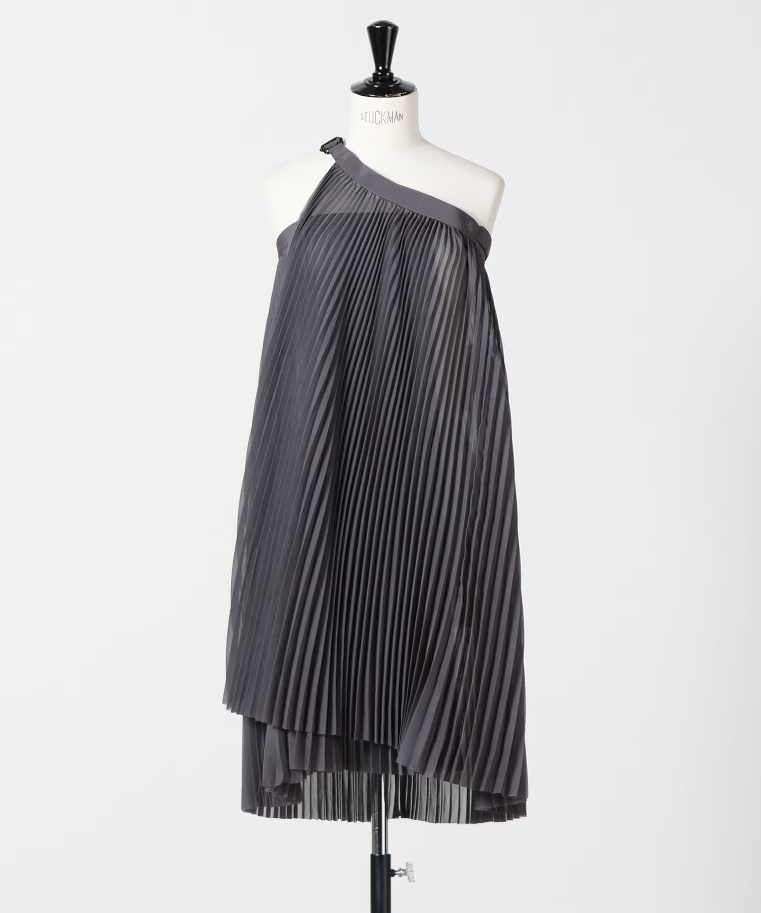 SS26コレクションで存在感を放った程よい厚みのあるバスク素材を使用したドレス。ウエストから両サイドに袖のようなデザインがあしらわれ、結ぶことでウエストマークとしての機能を果たします。