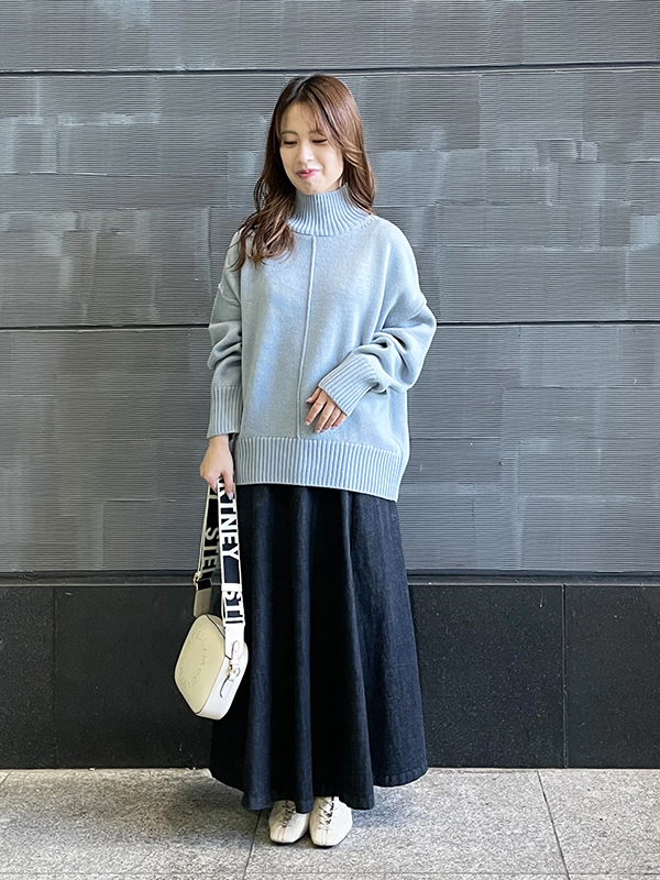 コンパクトめなサイジングのニットなので、ボリュームのあるフレアスカートとの相性抜群です!