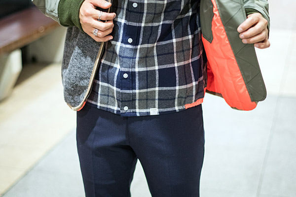 実はシャツの裾に裏地と同色のオレンジのラインが入っています!