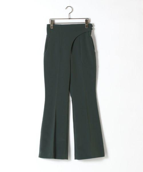 Mame Kurogouchi(マメクロゴウチ)のフレアパンツ。ウエスト部分から竹籠のフォルムの様な曲線を描き、伸縮性のある生地は動きに合わせて心地よく伸び、フィット&フレアのシルエットにすることでスタイルアップを叶えてくれる1着。