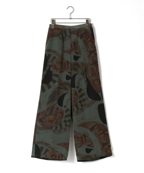 Mame Kurogouchi(マメクロゴウチ)のストレートパンツ。世界でも1社のみが有する手作業のプリント技術により表現されたマーブルプリントシリーズです。シーズンのテーマを美しく物語り様々なスタイルに取り入れ易いパンツは、ウエストをゴムにすることでリラックスムードも叶えながら、コーディネートのアクセントとしても活躍し、忽ち装いをコンセプチュアルへと押し上げてくれます。