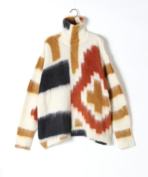 Mame Kurogouchi(マメクロゴウチ)のニットトップス。ゆったりとしたシルエットはリラックスムードの中に上品さも兼ね備え、首元にはスカーフの様に巻けるデザインを配することで、首周りを暖かく、コートの襟元から肩に掛ければスカーフの様な使用もでき、様々な見せ方のできる万能な1枚です。肌側に柔らかな綿素材を使用し着心地も抜群です。