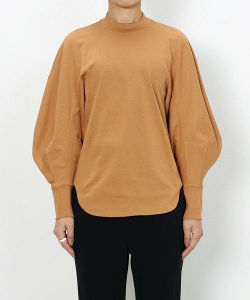リラクシングな軽い着心地が日常のあらゆるシーンに溶け込むコットンジャージートップ。カジュアルな素材ながら、前身頃から袖まで続いたカッティングや、袖や背中にボリュームをとった上品なシルエットが印象的な一着。