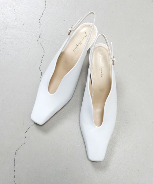 曲線のカッティングが印象的なスリングバックヒール。ブランドのシグネチャーであるドレスの胸元の彷彿とさせるカッティングデザインを施したエレガントなフロントシーム、バックストリング、キトゥンヒールが、女性らしさに溢れる一足。アイコニックながらもプレーンなデザインのパンプスは、どんなスタイリングにも合わせやすく、装いを上品にアップデートさせる。ヒール高6.8cm。