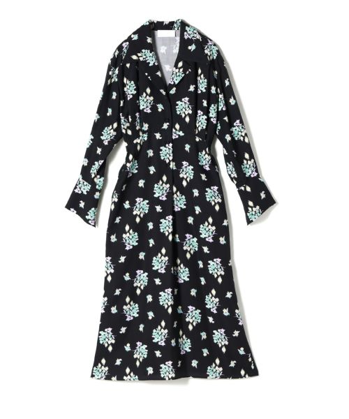 江戸時代の和ガラスのように淡く、絣のような花柄をプリントしたデザイン。インナーをレイヤードしたりニットを羽織ることでシーズンレスに着用することが可能です。マメらしいカーブポケットが配置され、ウエストには同素材のストリング付きとなっております。メリハリのあるシルエットがシーンを問わず活躍してくれる1着です。