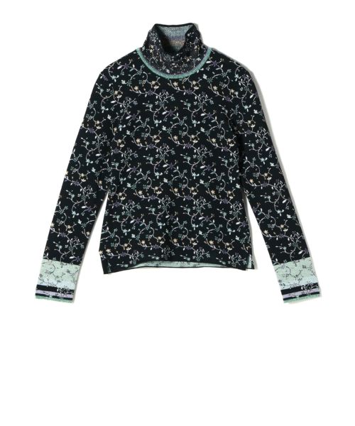 Floral Motif Glitter High Neck Knit Top