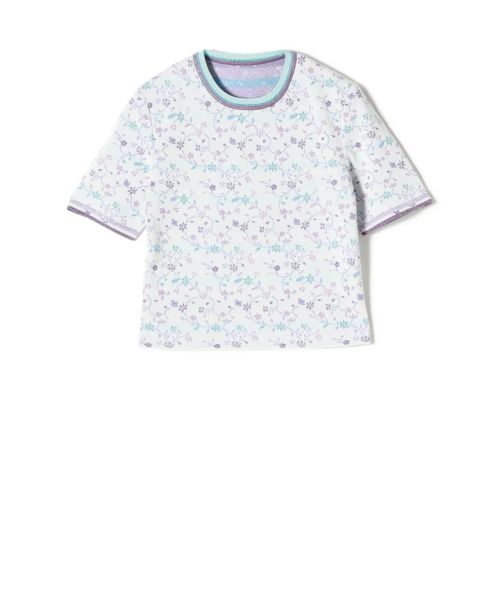 Floral Motif Glitter Short Sleeve Knit Top