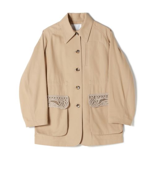 アイコニックなコード刺繍を施したフラップが印象的な、ミドルレングスのジャケット。オーバーサイズのシルエットでありながら、ウエストに配した紐を調整することで、表情に変化をつけた着こなしが可能です。装飾性のあるディテールを取り入れつつも、全体はすっきりとしたバランスに仕上げ、上品で洗練された印象に。日常のスタイリングに自然に馴染む、汎用性の高い一着です。