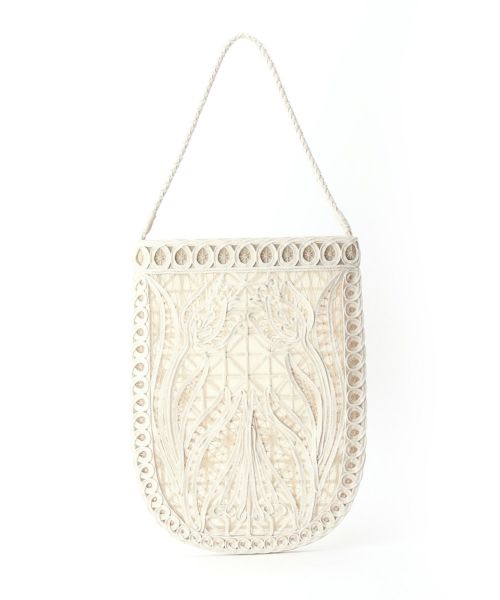 Mame Kurogouchi(マメ クロゴウチ)のコード刺繍バッグ。コード刺繍のテクニックを用いたアイコニックなバケットバッグです。 オリジナルのリネンコードを一筆書きの要領で柄を組みながら刺繍していくことで、日本の伝統的な籠モチーフや植物からインスパイアされた複雑な編み模様を表現。非常に軽く、持ち手の長さを2段階に調節できるため、気分やスタイルにあわせてハンドバックや肩掛けにしてスタイリングをお楽しみいただけます。