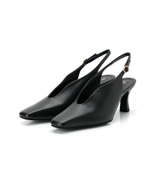 Mame Kurogouchi(マメ クロゴウチ)のパンプス。曲線のカッティングが印象的なスリングバックヒールです。 ブランドのシグネチャーであるドレスの胸元を彷彿とさせるカッティングデザインを施したエレガントなフロントシーム、バックストリング、キトゥンヒールが、愛らしい一足。アイコニックながらもプレーンなデザインのヒールは、どんなスタイリングにも合わせやすく、装いを上品にアップデートさせる。ヒール高6.8cm。