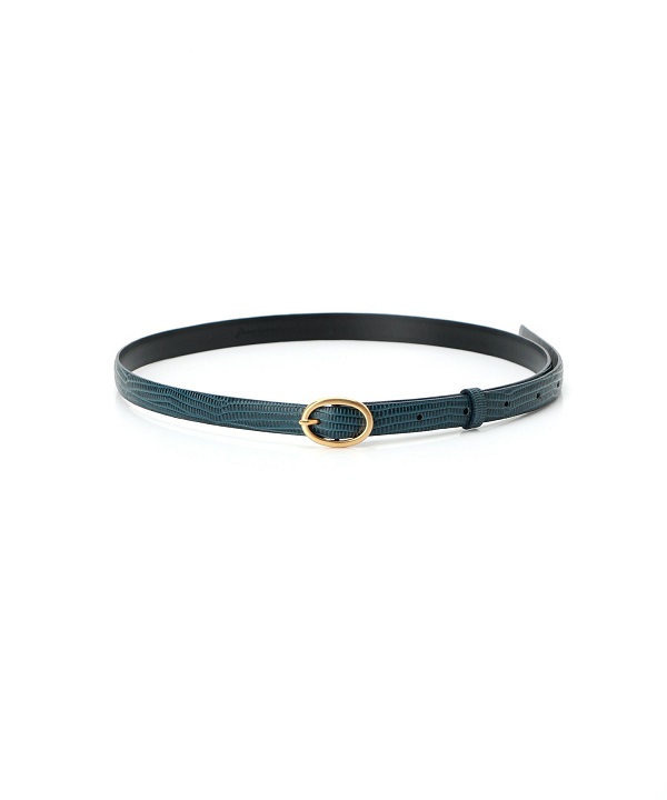 Mame Kurogouchi(マメ クロゴウチ)のベルト。繭のようなシェイプのオリジナルバックル付きレザーベルトです。 ベーシックかつ細身のベルトにすることで、様々なボトムスに使用することができ、ベルトループのないドレスやトップスの上からウエストマークしても、美しいスタイリングが可能。表面は凹凸感のある柄を取り入れることで、春夏のカジュアルな装いにも、オケージョンスタイルにも活用しやすく、いつものスタイルにプラスしやすい1点。