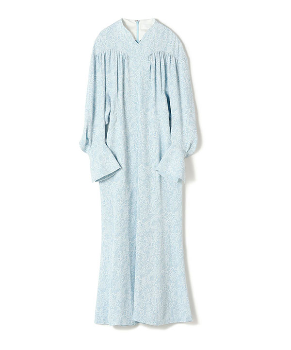 Mame Kurogouchi(マメ クロゴウチ)のワンピース。 凸型に浮き彫りにされた陽刻を思わせる立体感をオリジナルの花柄で表現したジャカードドレスです。前後のヨークの切り替えとふんだんに入れられたギャザーが美しいドレープを作り出しています。背中に連なるくるみボタンや、カーブのついたネックラインがマメクロゴウチらしいアイコニックなデザイン。オケージョンにも、カジュアルなシーンにも馴染み、様々なシーンで着用し易い1着です。