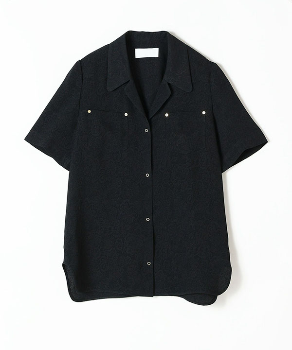 Mame Kurogouchi(マメ クロゴウチ)のシャツ。 凸型に浮き彫りにされた陽刻を思わせる立体感をオリジナルの花柄で表現したオープンカラーシャツです。落ち着いた光沢のある生地に陽刻のような凹凸感を出しながら、ブランドらしいオリジナルの花柄デザインが浮かび上がる華やかなシャツは、背中にウエスタン調のヨーク切り替えが施され、丸い襟先や深めの開衿から覗く肌がエレガントさをプラスします。ゴールドのリベットやリングドットが散りばめられ、カジュアルな中にもエレガントな印象を与える1着。デニムにインしたラフなスタイリングもおすすめです。
