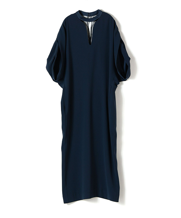 Mame Kurogouchi(マメ クロゴウチ)のワンピース。胸元のスリットがセンシュアルなアクセントをプラスするIラインドレスです。 襟のカットラインや二の腕をカバーする袖のディテールが愛らしく美しいスタイルを作り出します。大胆に透けるバックスタイルは壺型に繊細なレースを配することで、エレガントなニュアンスをプラスする1着に仕上げられました。