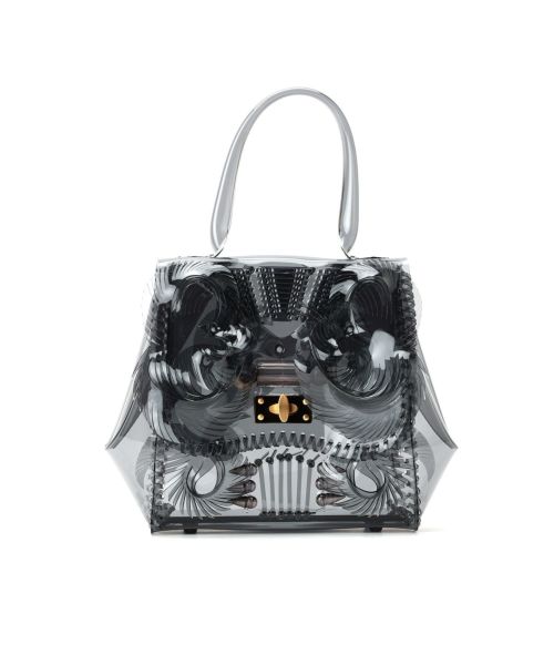 Mame Kurogouchi(マメ クロゴウチ)のバッグ。PVCを使用したアイコニックなハンドバッグです。 ブランド創設時からMame Kurogouchiのシグネチャーアイテムとしてラインナップされています。しっかりと重厚感のあるハンドバックは立体的な装飾と華やかなひねり金具が上品なスタイルに昇華してくれます。