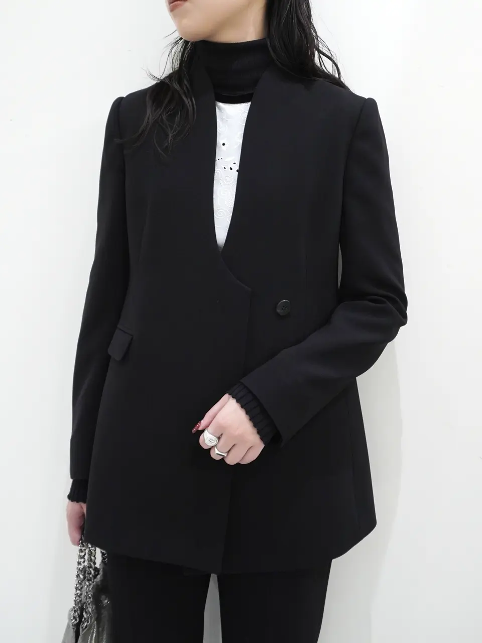 【Mame Kurogouchi(マメ クロゴウチ)】 Acetate Polyester Collarless Double Breasted Suit Jacket