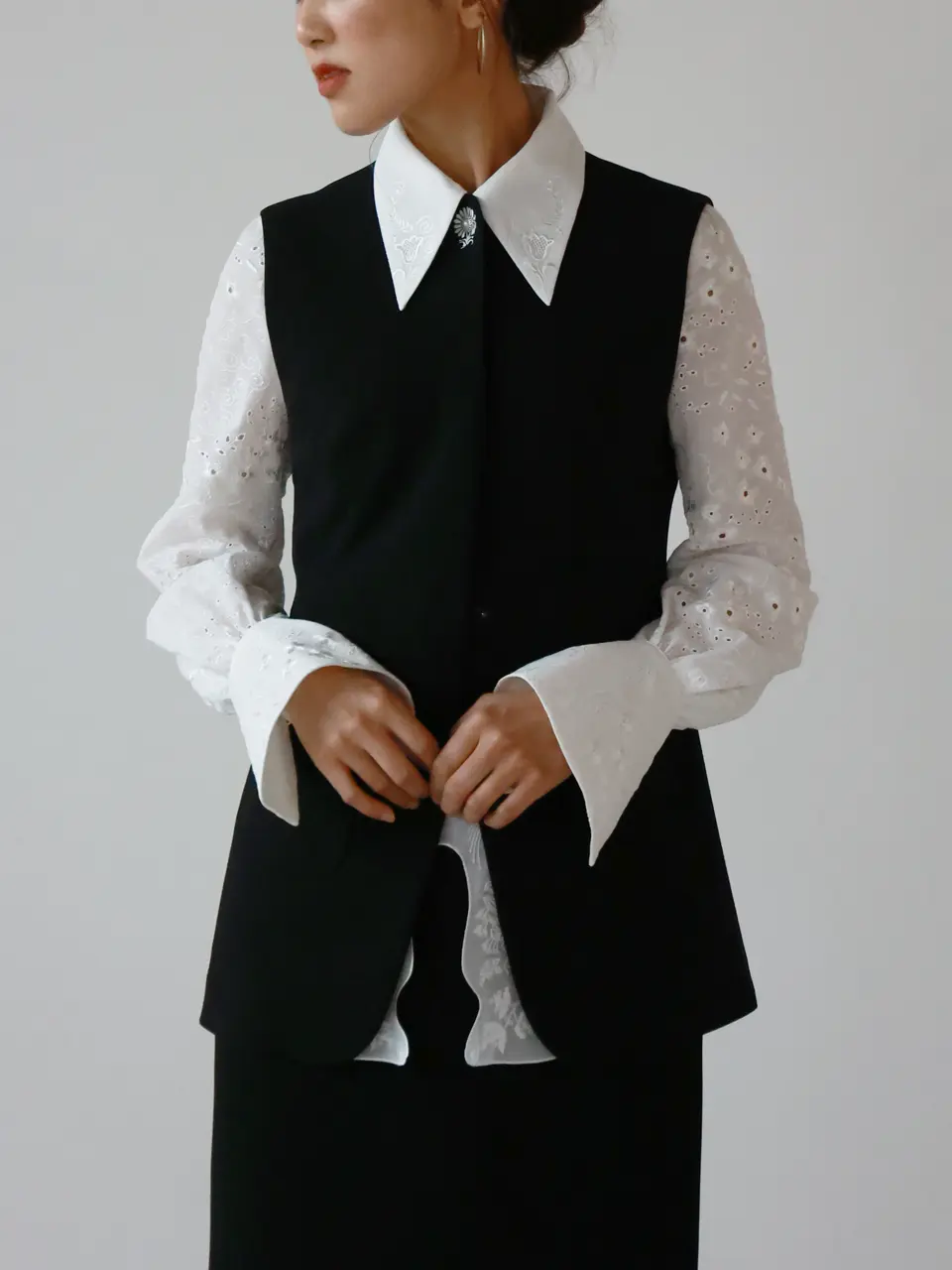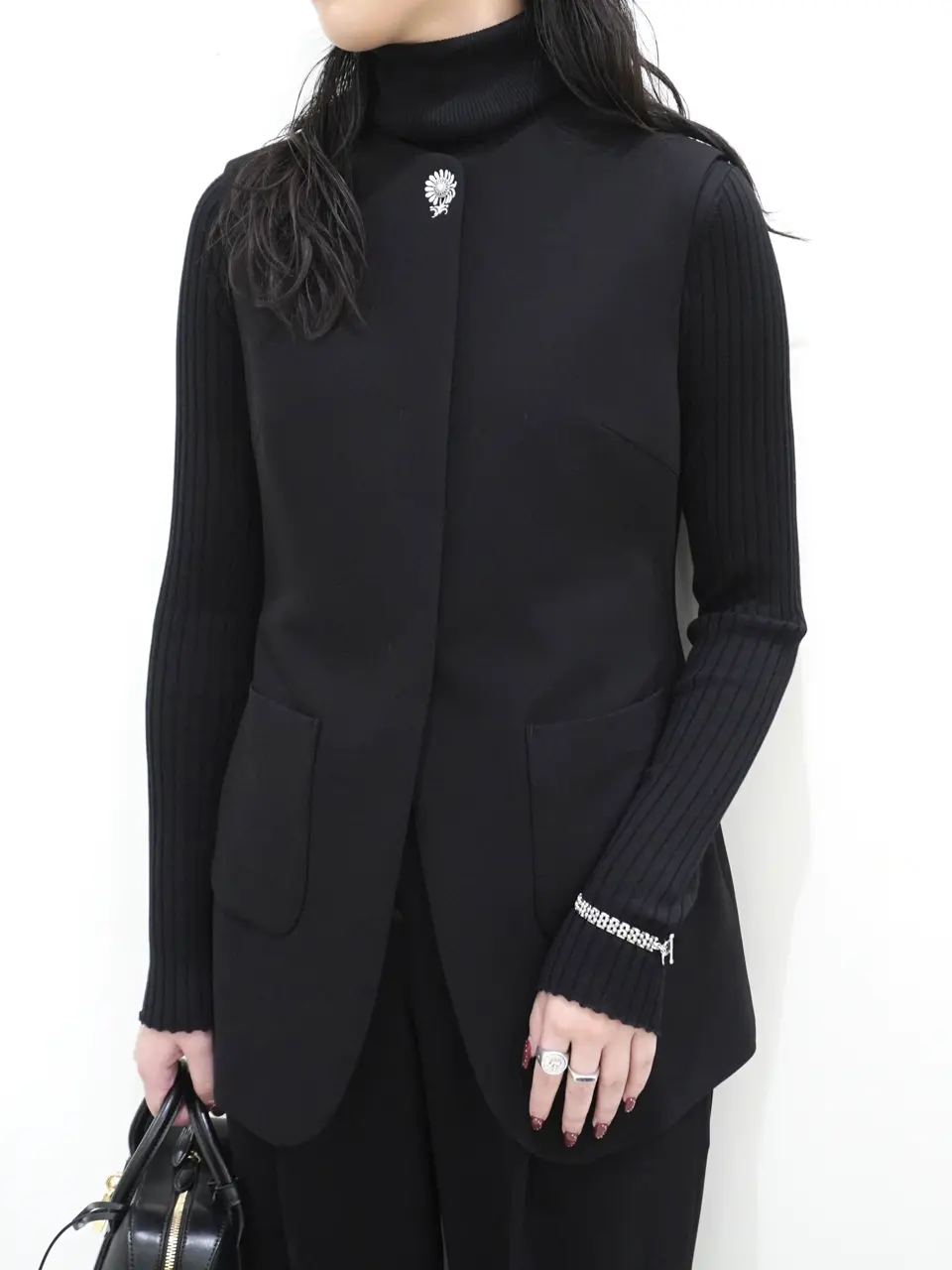 ・ベスト 【Mame Kurogouchi(マメ クロゴウチ)】 Acetate Polyester Embroidered Buttonholes Vest