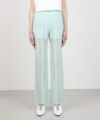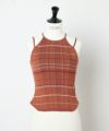 リブニットワンピースは不揃いの竹ひごの束を模してランダムに配し、格子の様なチェック柄を表現。シアーなパンツと合わせてリラックス感を出して着たい気分です♪