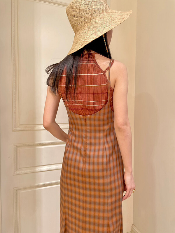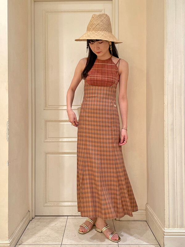 【Mame Kurogouchi(マメ クロゴウチ)】 Linen Mix Ombre Check Camisole Dress