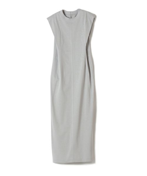 Mame Kurogouchi(マメクロゴウチ)の上品な光沢が印象的なノースリーブジャージードレス。肩に大きなタックを入れたことで、腕周りを程よくカバーしてくれます。カジュアルな素材ながらも構築的なフォルムがすっきりと上品な印象を保ってくれます。程よくリラクシーなムードを持った一枚は日常のあらゆるシーンに溶け込みます。