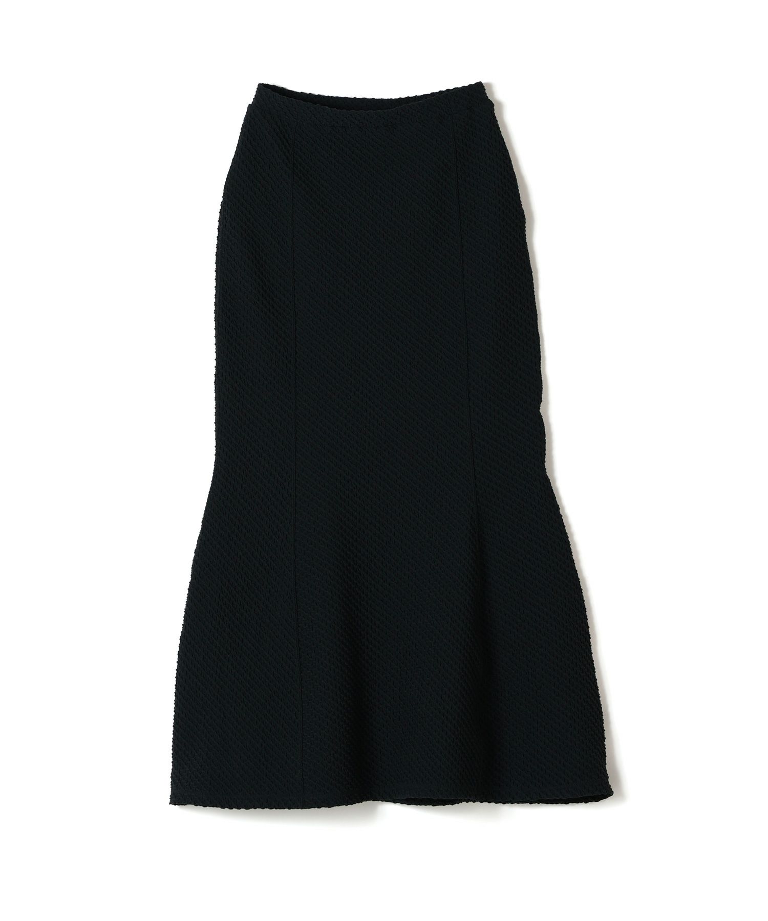 Mame Kurogouchi(マメ クロゴウチ)のジャカードスカート。 コンパクトな身頃とマーメイドの様な分量感が特徴的なスカートは、フォルムのコントラストが美しく、縫い代をステッチで抑えることによる滑らかなフィッティングがカジュアルになりすぎない上品さを実現。ウエストにゴムを配すことでリラックスムードも叶える1着に仕上げられています。同素材のトップス(品番:MM24FW-JS047)とセットアップで着用することでオケージョンにも対応する汎用性の高い1着に仕上げられています。