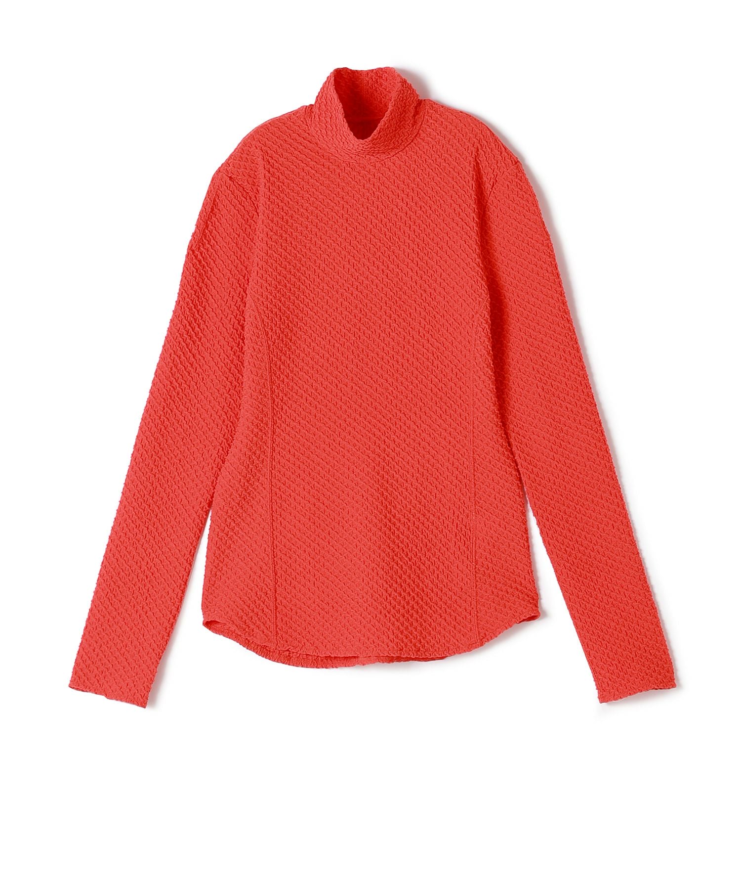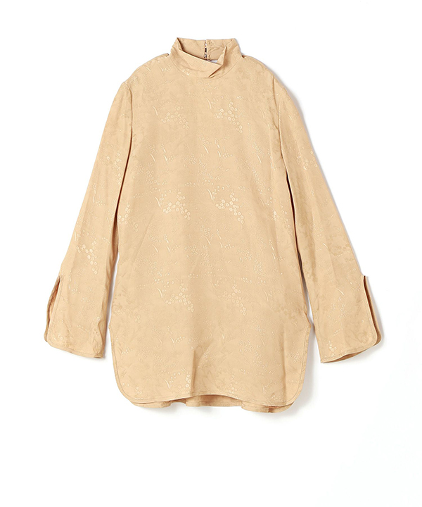 Mame Kurogouchi(マメ クロゴウチ)のジャカードハイネックトップ。 コンパクトな身頃が特徴的なトップスは、タイトフィットながら、縫い代をステッチで抑えることによる、滑らかなフィッティングがカジュアルになりすぎない上品さを実現。インナーとしても適度なフィット感がレイヤードしやすく、透け感のない素材は1枚でトップスとして着用することもでき、同素材のスカート(品番:MM24FW-JS049)とセットアップで着用することでオケージョンにも対応する汎用性の高い1着に仕上げられています。