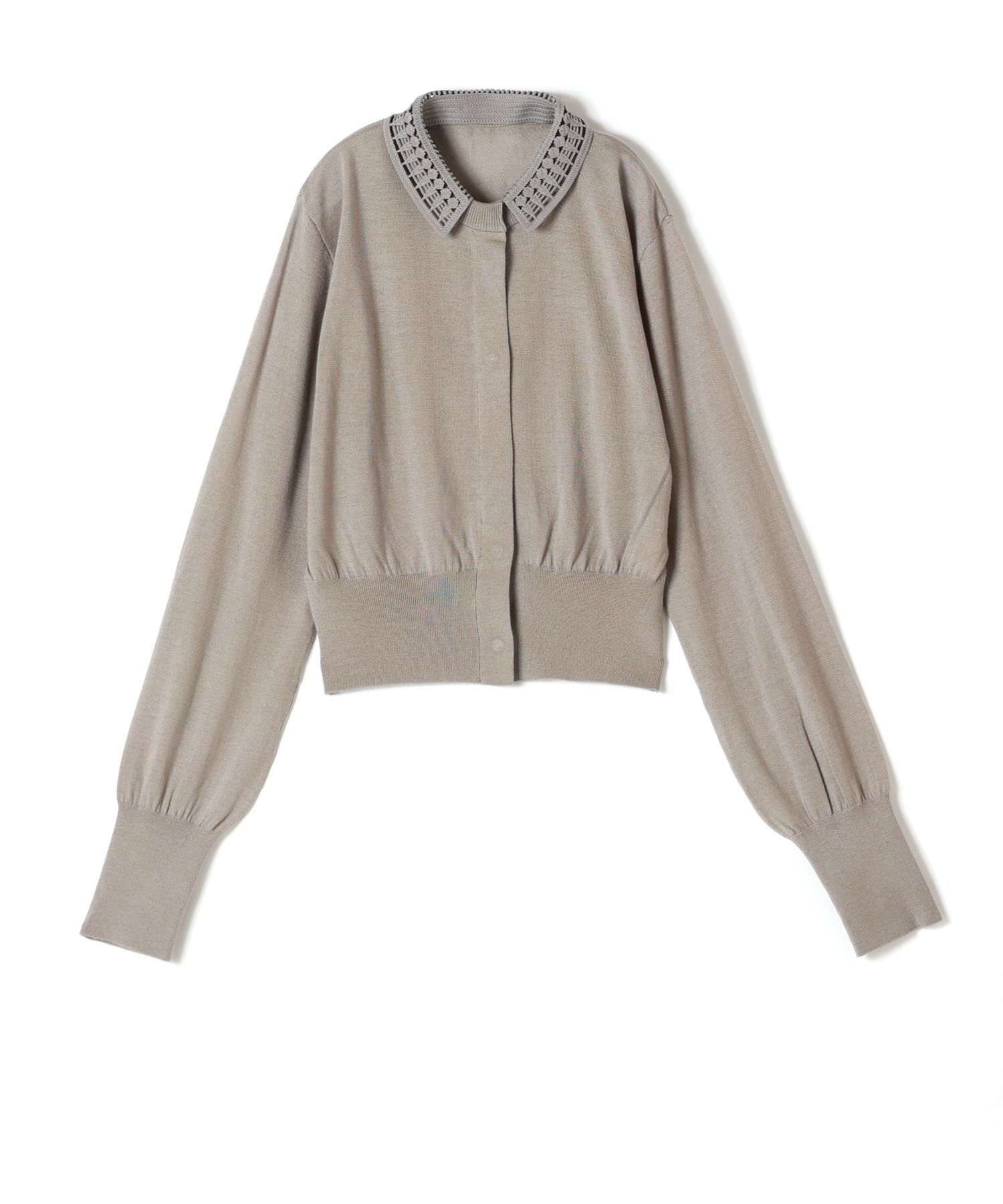 Mame Kurogouchi(マメ クロゴウチ)のカーディガン。コンパクトな着丈に比翼に仕立てた前立てがクラシカルなカーディガンです。 ボタニカルな刺繍をデザインした襟が着こなしのアクセントに。刺繍襟は取り外すことができ、ミニマルなクルーネックカーディガンとしての着こなしも可能。身頃や袖に程よいゆとりがありながら、コンパクトで薄手に仕上げたカーディガンは持ち運びもしやすく、メリハリのあるシルエットが幅広いスタイルにフィットする1着に。