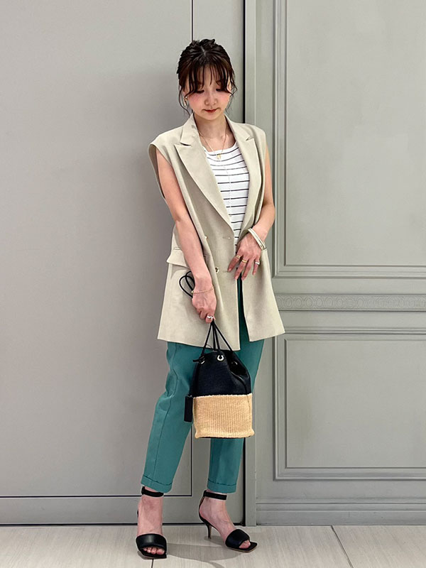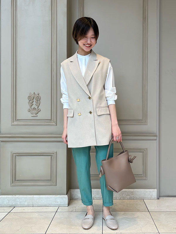 ブラウスとジレを合わせることでオケージョンでも着用いただけるような上品なコーディネートに。