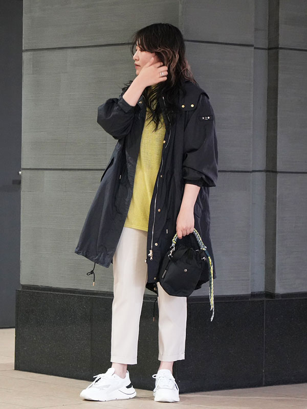 ■綺麗目パンツをナイロンパーカーで着崩して大人のスニーカースタイルに