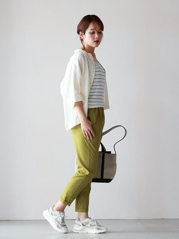 いつも白やネイビーなどベーシックカラーを選びがちな方でも、挑戦しやすいカラーがこのピスタチオ。