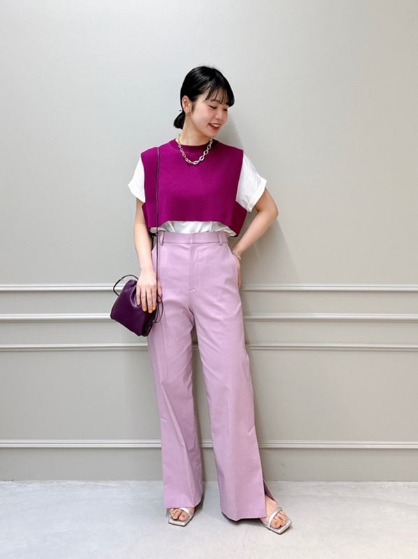 またこちらのパンツは深みのあるピスタチオカラーなので取り入れやすいのも魅力的^^