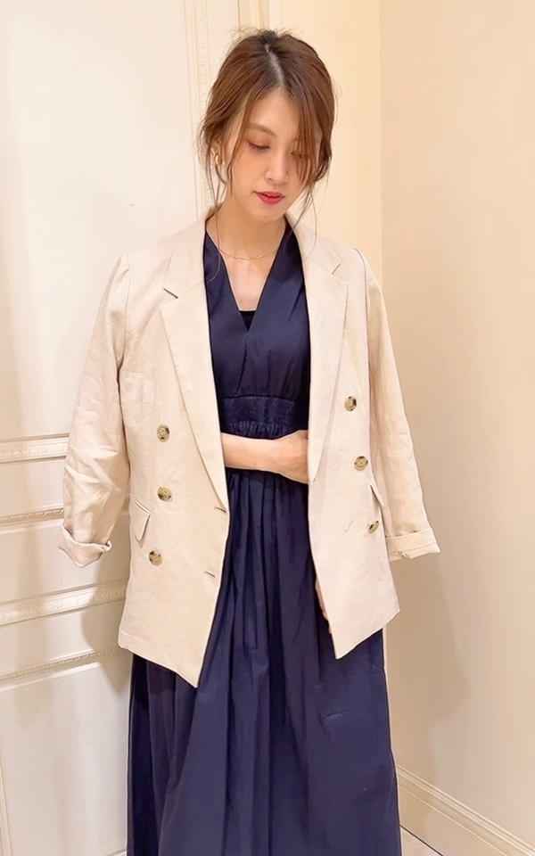 こういうワンピースに、今の時期着るにはなに羽織ったらいいの?というお客様には、こちらのジャケットがおすすめ!