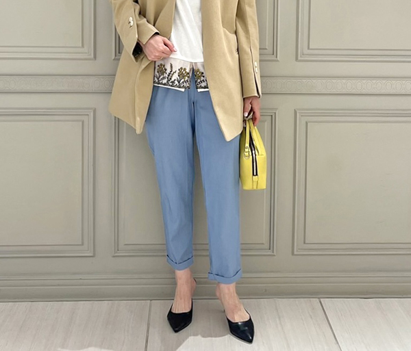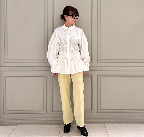 ■サフランイエローの美シルエットパンツで一気に春先取りコーディネートに■