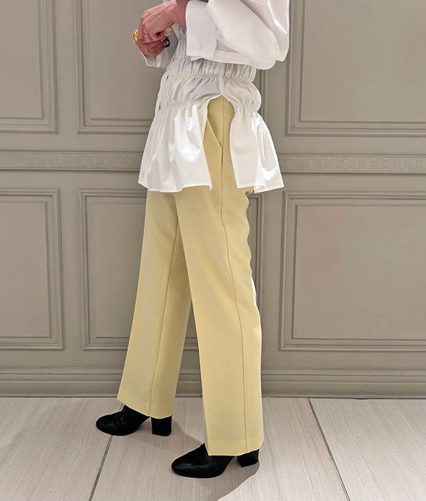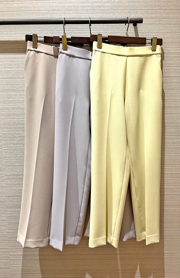 履き心地も兼ね備えたパンツで伸縮性のある素材に、ウエストゴム仕様のイージーな履き心地でありながらも、高い美脚力を備えたストレートパンツ。